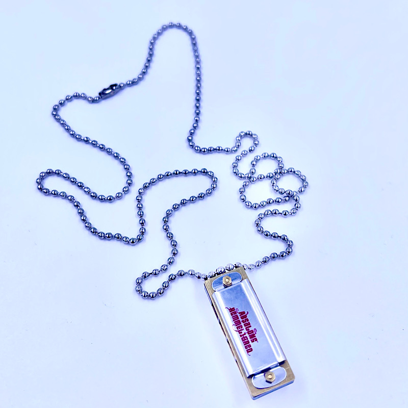 Der følger både en stor og en lille mundharmonika i halskade med i sættet. Halskæden kan tages over hovedet, passer til alle og er naturligvis nikkelfri.